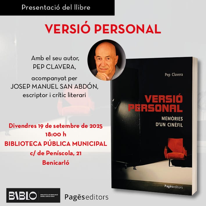 “Versió personal, memòries d’un cinèfil”, es presenta el dia 19 de setembre, a les 18:00 h., a la Biblioteca Manel Garcia Grau de Benicarló
