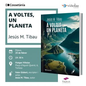 Jesús Tibau presentarà  a el pròxim 20 de febrer “A voltes, un planeta”. Tibau, que ja compta en diferents publicacions, tant de poesia com de narrativa, sovint plena de referències reflexives, li agrada, tot i així, buscar llocs especials, “sortir-me’n de la pauta per a aproximar els llibres a hàbitats diferents, entre altres coses, com a estímul per als assistents, i per a divertir-me jo mateixa”. Així, Tibau ha presentat llibres a la fàbrica de Xocolates CREO, a la sala d’spinning del Complex WIN, a estudis fotogràfics…, en funció del contingut del llibre.